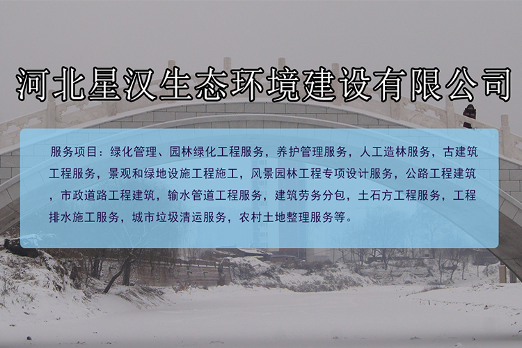 河北星漢生態環境建設有限公司成立于2011年4月15日,注冊資金5699萬元,擁有市政公用工程施工總承包貳級資質,公路工程施工總承包叁級資質、勞務資質。公司通過了ISO9001質量管理體系認證,ISO14001環境管理體系認證,ISO45001職業健康安全管理體系認證。經營范圍涉及綠化管理、園林綠化工程服務,養護管理服務,人工造林服務,古建筑工程服務,景觀和綠地設施工程施工,風景園林工程專項設計服務,公路工程建筑,市政道路工程建筑···